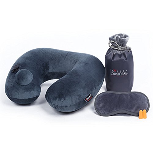 Best Seller! Axeon TravelFix - Premium automatic inflatable travel pillow / neck pillow / U-shaped pillow / air travel pillow for travel - roll up - with aromatherapy goggles and earplugs (Gray) Review