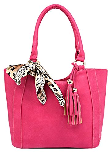 Best Seller! Kukubird Faux Leather With Tassel & Scarf Accessory Detail Tote Handbag - Rose Review