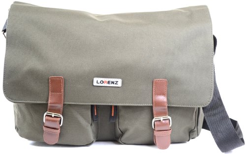 Lorenz offer Large Canvas Style Messenger / Cross Body / Shoulder Work School Travel Satchel - Green. This awesome product currently limited units, you can buy it now for , You save -