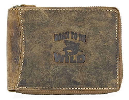 Born to be Wild offer Men's zip around Natural Genuine Leather Wallet with Shark. This awesome product currently limited units, you can buy it now for £24.90, You save -