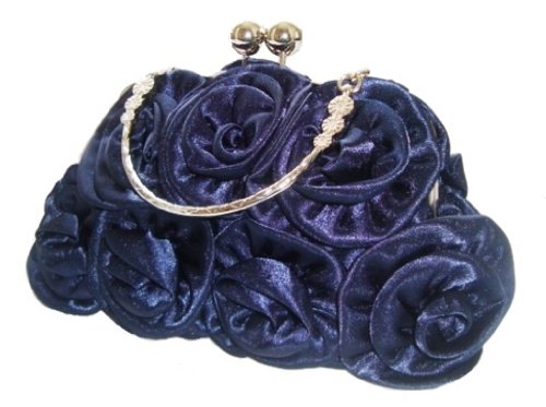 Best Seller! New Satin Silk Rose Evening Wedding Party Handbag party Bridal (NAVY BLUE) Review